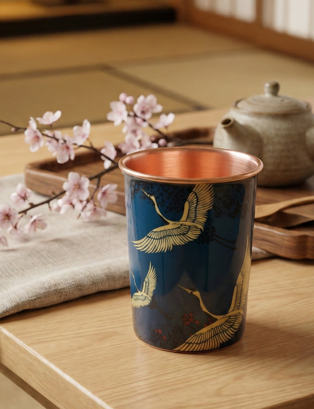 Găsești aici pahare și căni din cupru pur, autentice, din India. Sunt recipiente create special pentru ritualul ayurvedic "Tamra Jal" (apa ținută în cupru), ajutând la purificarea și energizarea naturală a apei.