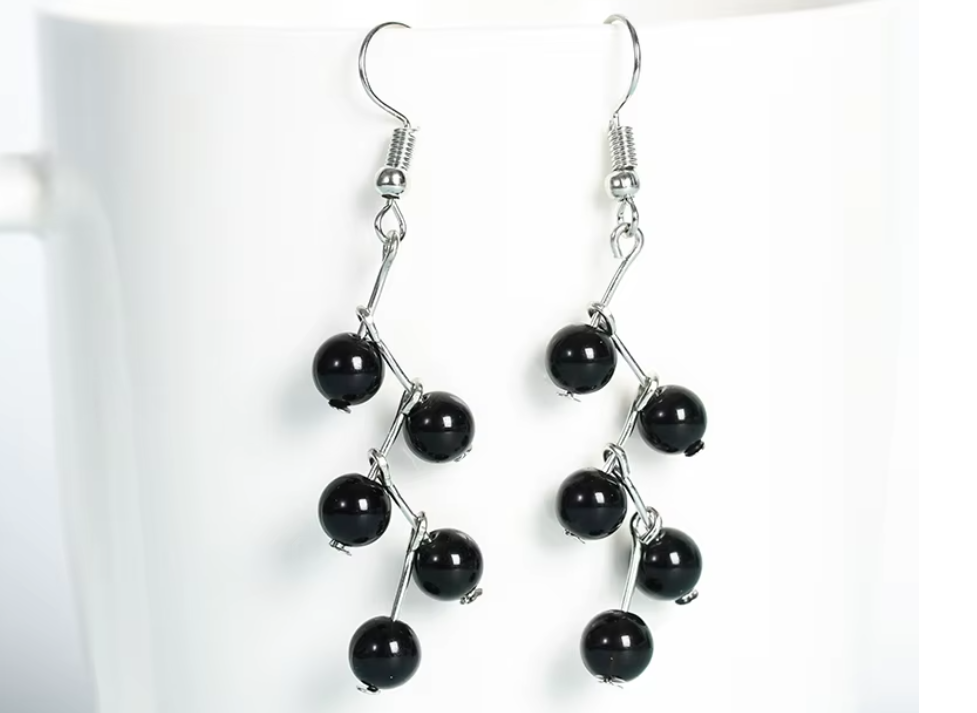 Acești cercei cu 5 mărgele de 6 mm din onix negru, montați în oțel inoxidabil,...