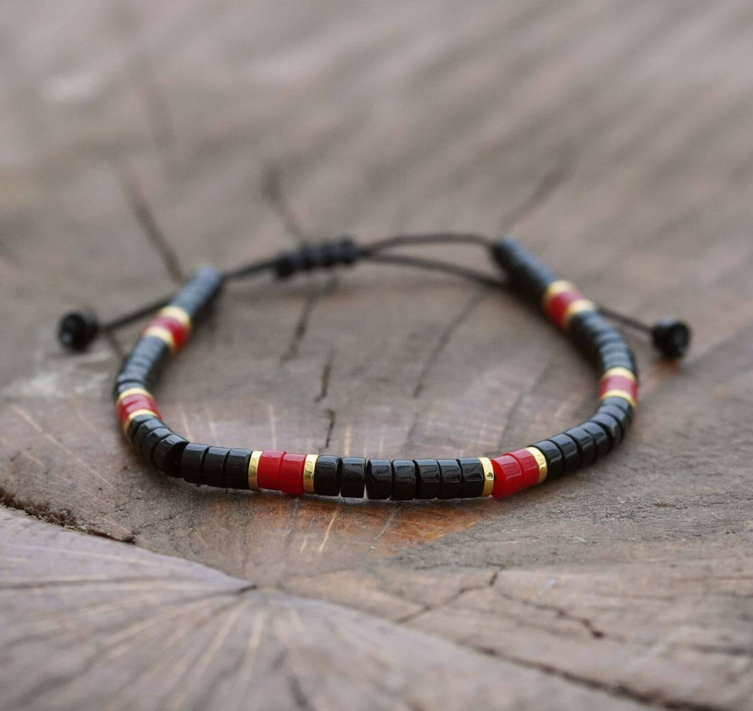 Bratara Reglabila cu Onix Negru si Agat Rosu