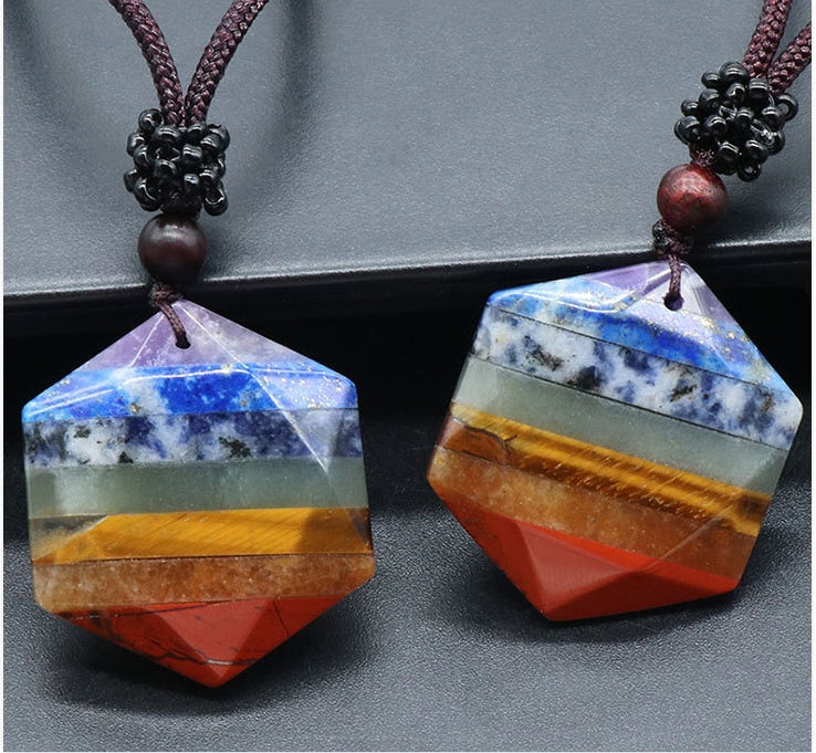 Pandantiv 7 Chakre, in forma de hexagon, cu snur reglabil
