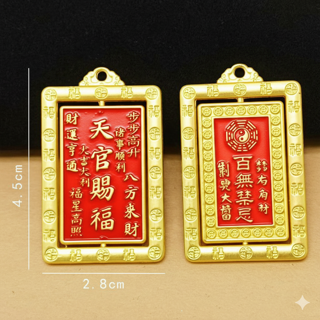 Această amuletă este un simbol puternic al norocului, prosperității și protecției, inspirată din tradiția Feng Shui. Inscripțiile sacre atrag abundența și succesul, în timp ce simbolul Bagua oferă echilibru și protecție energetică.