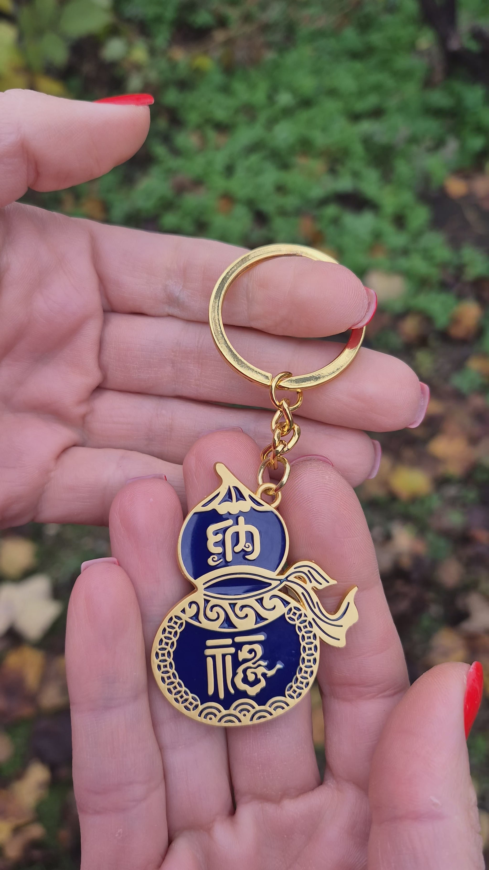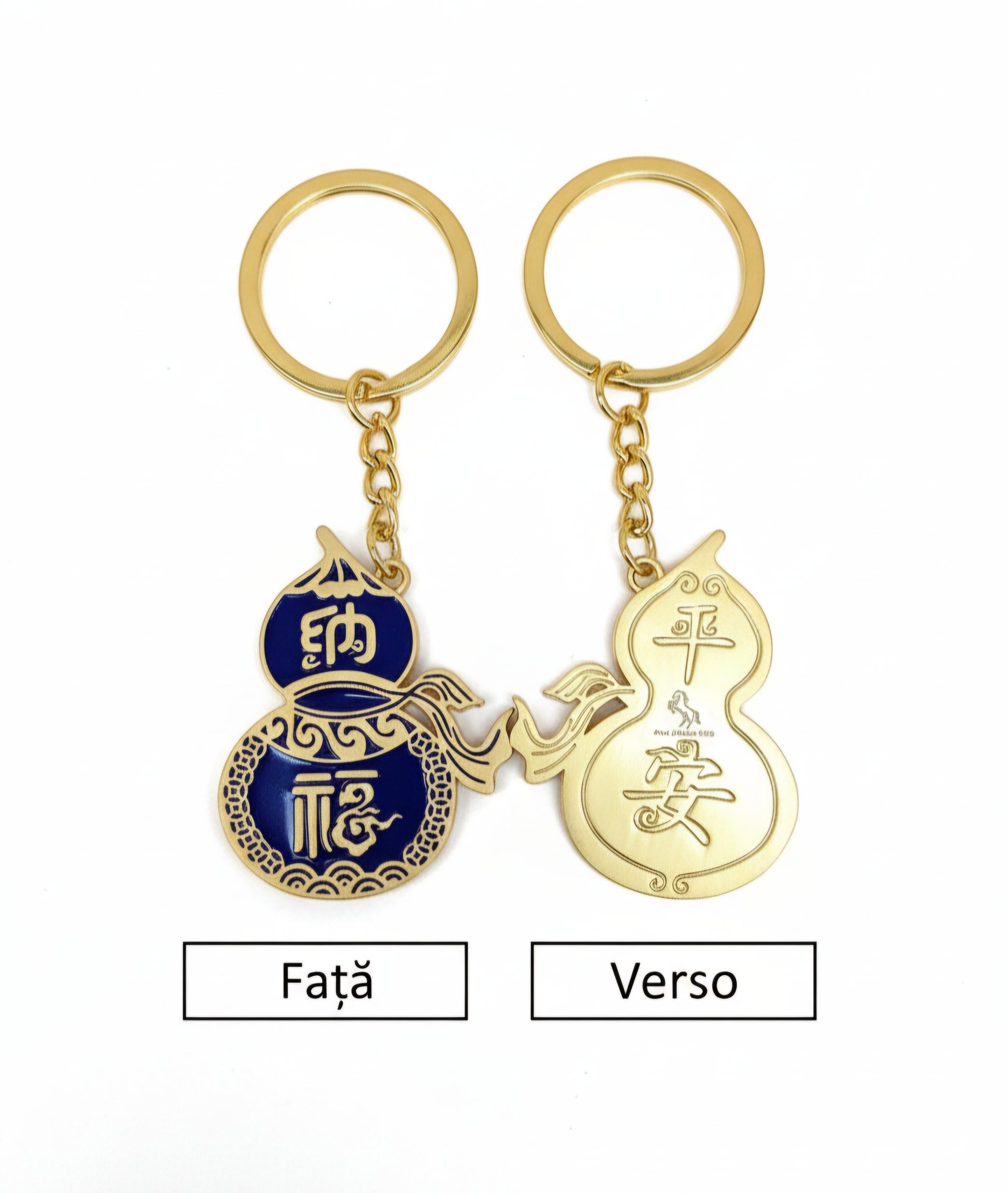Anul Calului de Foc (2026) va fi intens și rapid. Acest breloc în formă de Wu Lou (simbolul clasic al sănătății) este garda ta de corp. Fața (albastră) este un talisman pentru "Nà Fú" (Atragerea Binecuvântărilor), iar Verso-ul (auriu) poartă inscripția "Píng Ān" (Pace și Siguranță). Un remediu esențial pentru a-ți proteja sănătatea și a absorbi energia negativă a anului.