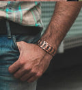 Design Robust: Zalele dreptunghiulare, ușor curbate, se așază natural pe mână. Este o brățară cu greutate, pe care o simți prezentă, dar care devine rapid parte din tine.