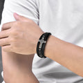 Brățară Piele Naturală, Neagra, Bărbați, Simbol Crucea Templiera