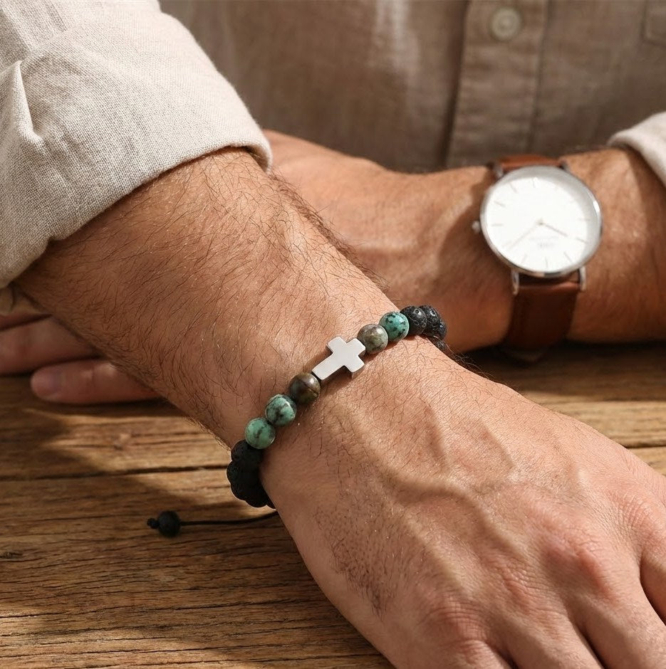 Brățară Reglabilă Unisex cu Cruce – Variante din Oțel Inoxidabil sau Lavă Turcoaz African
