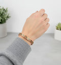 Această brățară elegantă, realizată din trei nuanțe de cupru împletite într-un model spirală, îmbină frumusețea tradițională cu un design echilibrat și atrăgător.