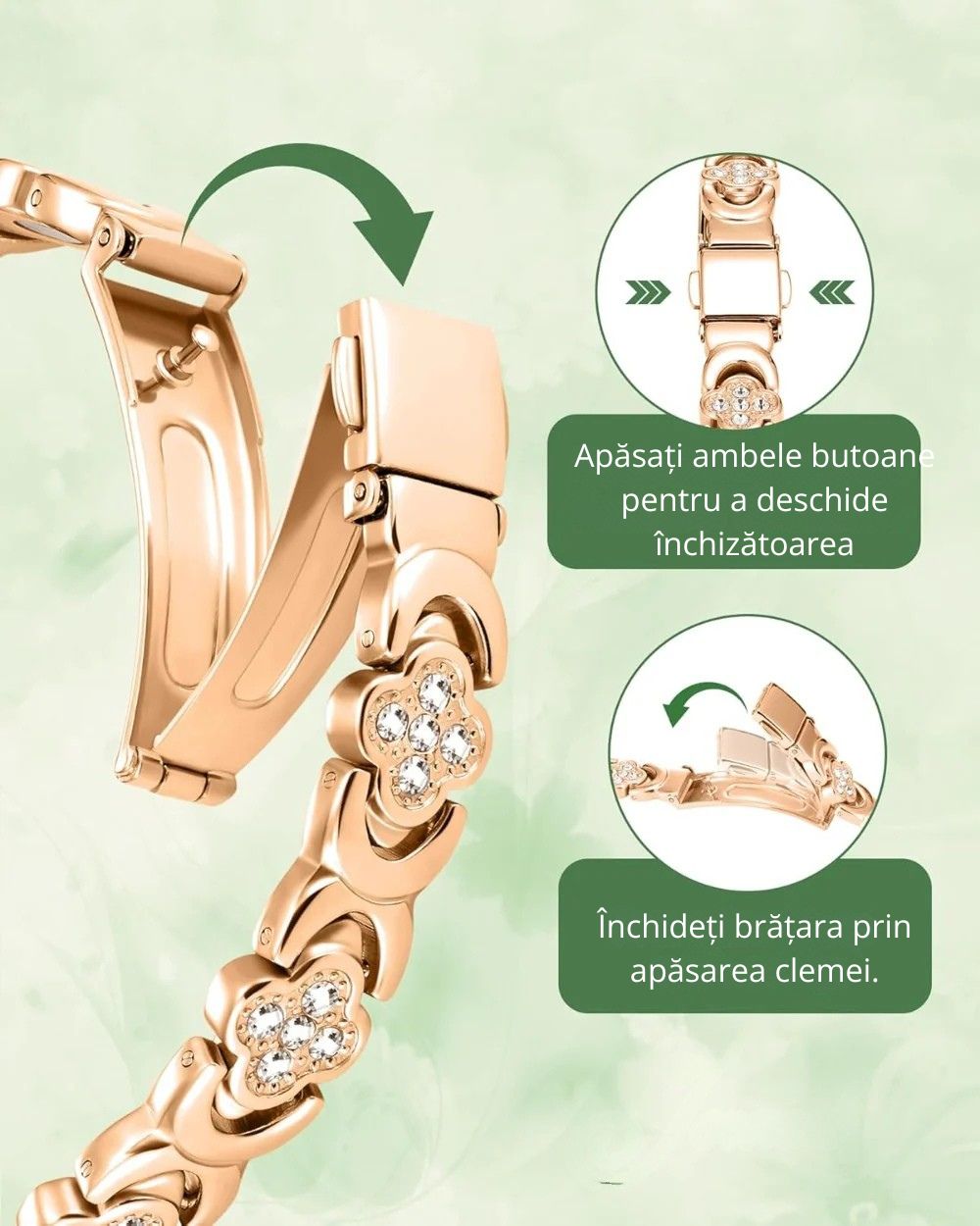 Descoperă echilibrul perfect între eleganță rafinată și stare de bine cu brățara noastră magnetică "Trifoi Norocos".