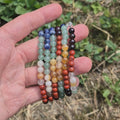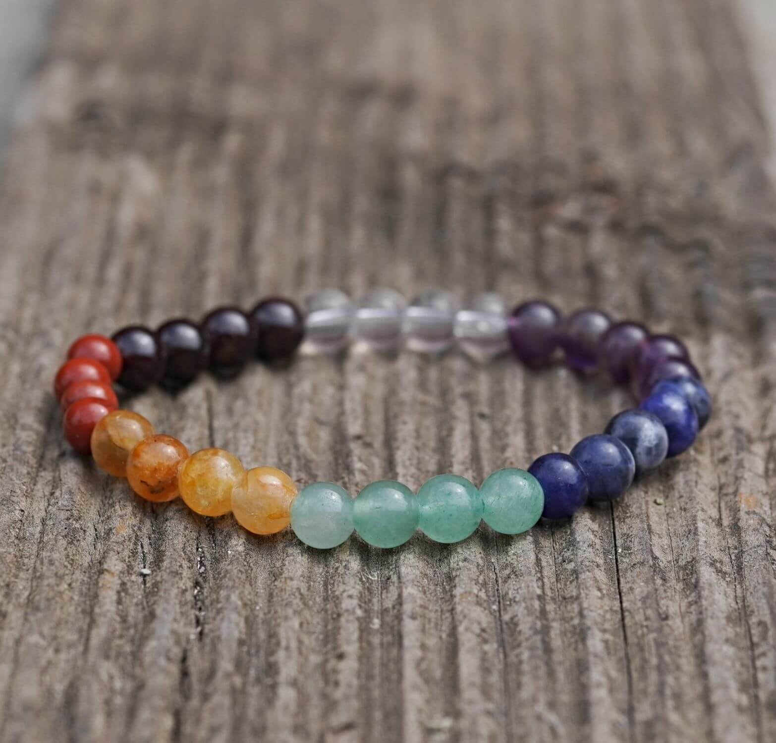 Brățară 7 chakre cu mărgele de 6 mm din cuarț transparent, granat, jasp roșu, citrin, aventurin verde, sodalit și ametist, pentru echilibru energetic și protecție zilnică.