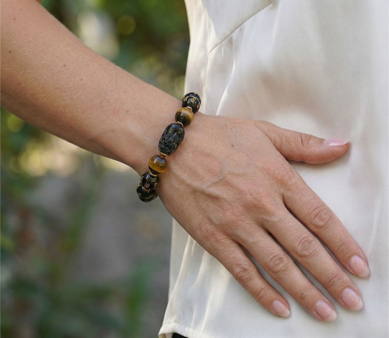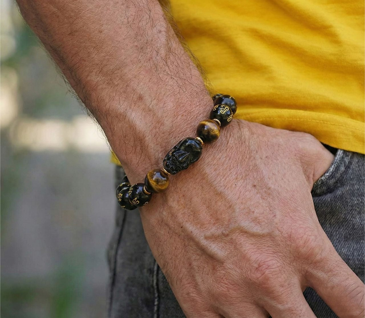 Această brățară Feng Shui este concepută special pentru a echilibra energia dinamică și intensă a anului 2026. Într-un an dominat de viteză și schimbări bruște, brățara funcționează ca o ancoră spirituală. Ochiul de Tigru temperează impulsivitatea, oferindu-ți claritate strategică, în timp ce legendarul Pi Xiu din Obsidian Auriu veghează asupra prosperității tale, atrăgând și protejând resursele în vremuri volatile.