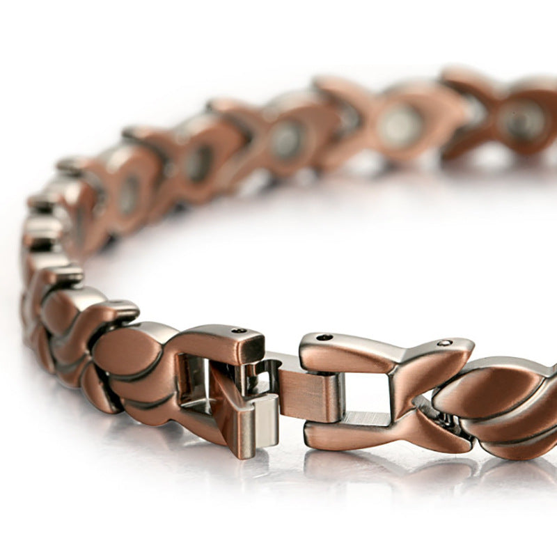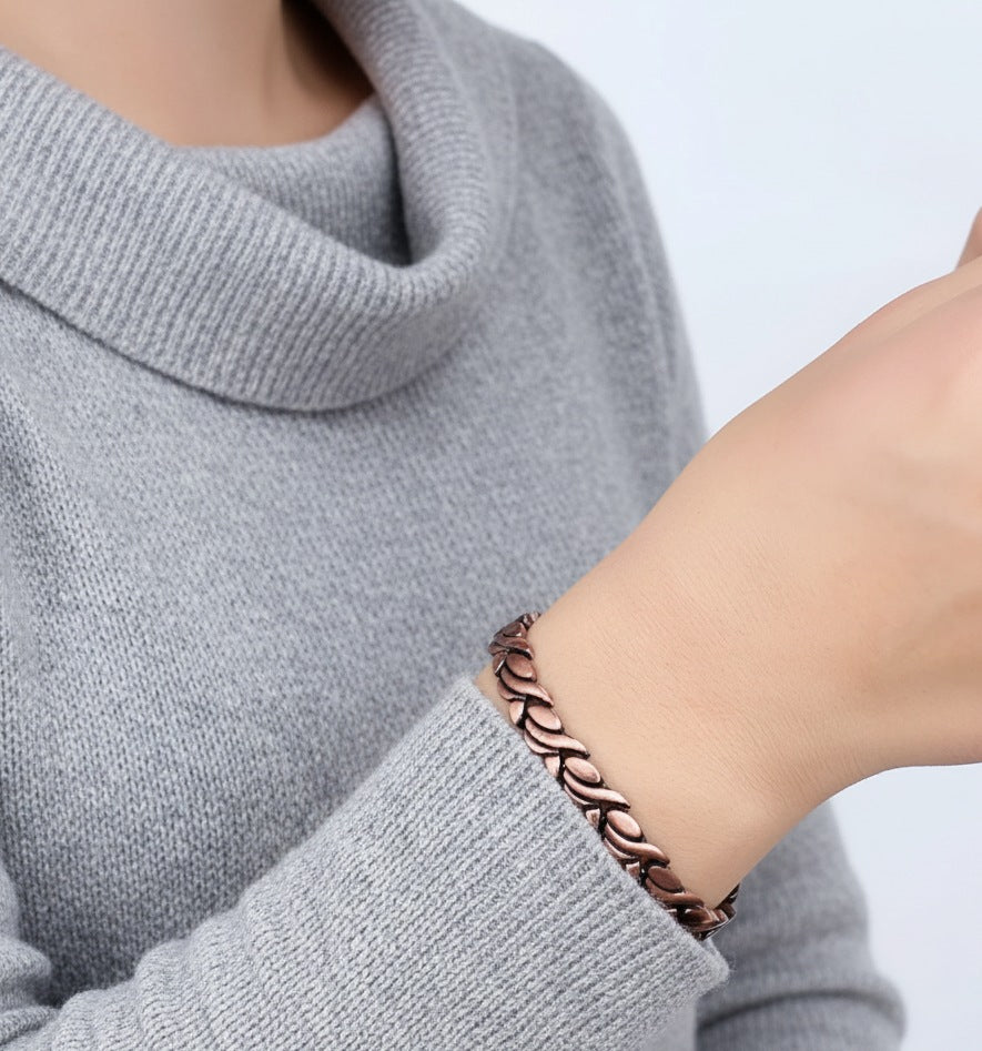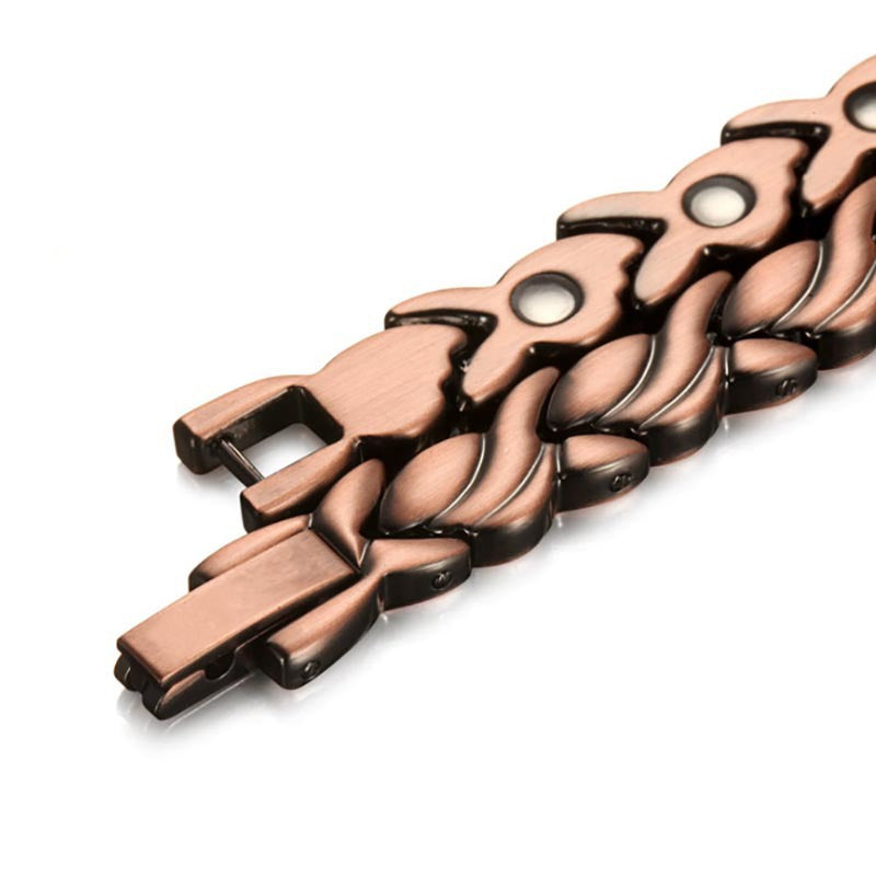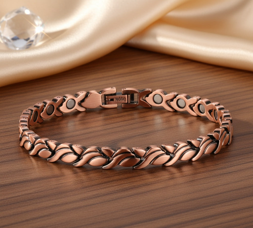 Redescoperă-ți vitalitatea și adaugă o notă de eleganță stilului tău cu această brățară magnetică excepțională, creată special pentru femei. Este o îmbinare perfectă între designul sofisticat și beneficiile terapeutice ale cuprului și magnetismului.