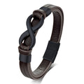 Brățară Piele Naturală, Maro, Bărbați, 21 cm, Simbol Infinit Negru