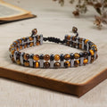 Mărgelele de Ochi de Tigru de 4 mm, dispuse în două șiruri paralele, amplifică efectul pietrei, formând un câmp energetic de protecție continuă.