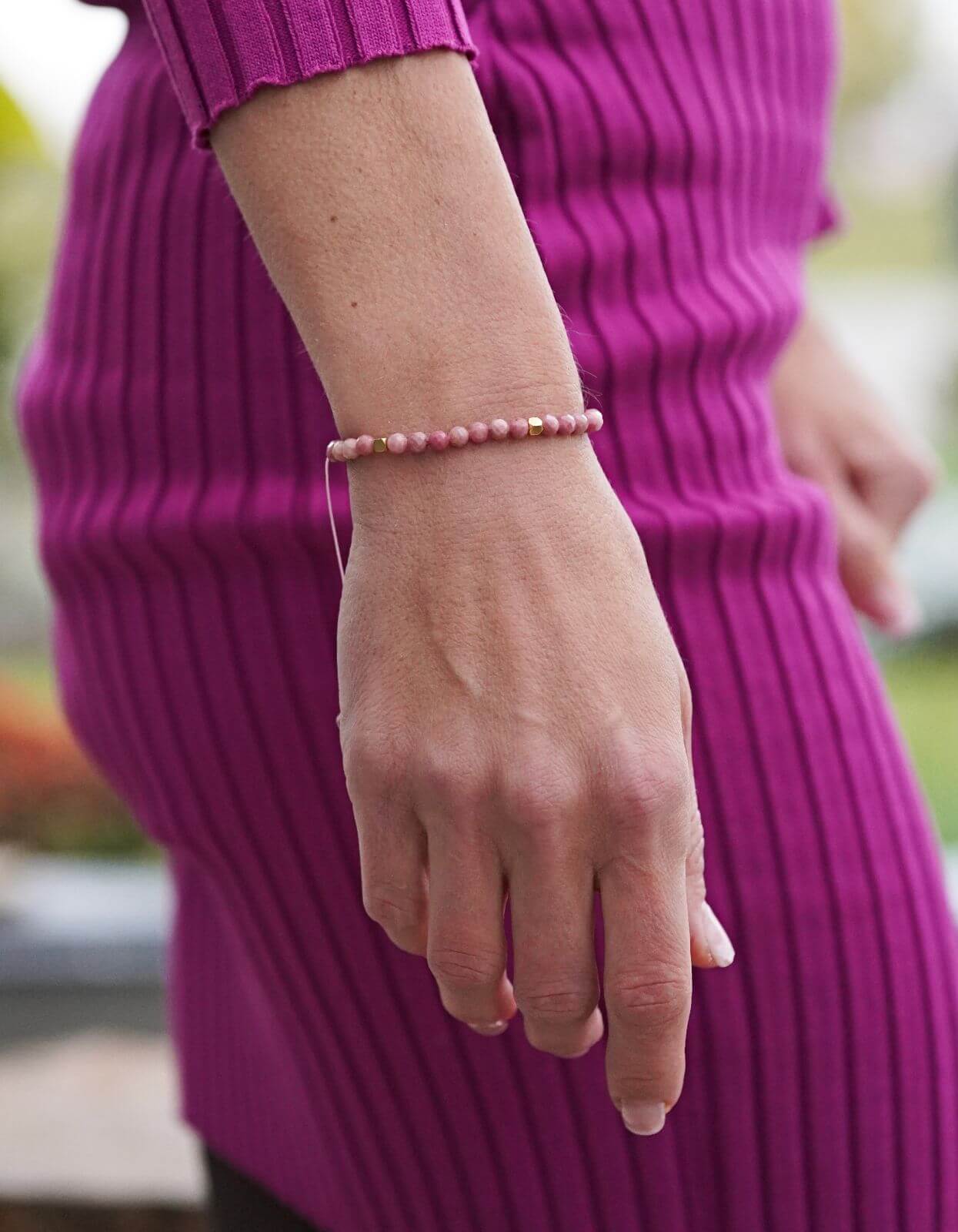 E de ajuns o privire asupra brățării cu cristale de rodonit fațetate și parcă tot ce e greu dispare.