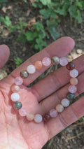 Brățara cu Piatra Soarelui, Heliotrop, Piatra Lunii și Cuarț Roz aduce echilibru, energie pozitivă, protecție și armonie emoțională pentru zodia Balanta