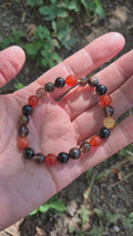 Brățara cu Carneol, Cuarț Fumuriu, Turmalină Neagră și Ochi de Tigru Auriu aduce protecție, stabilitate, curaj și claritate pentru Capricorni.