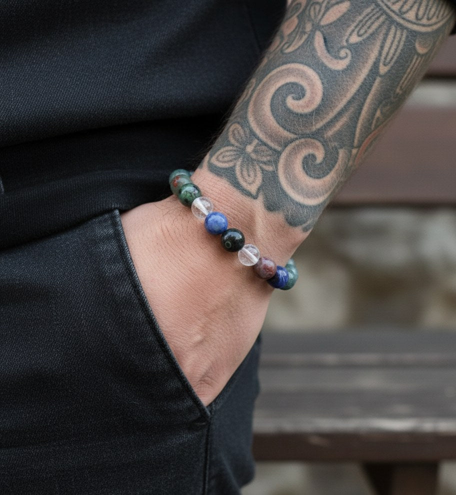 Împreună, aceste pietre creează un echilibru între protecție, claritate și energie pozitivă. Brățara devine un sprijin pentru liniște interioară și intuiție, ajutând la înțelegerea propriilor emoții și la menținerea armoniei în viața de zi cu zi.