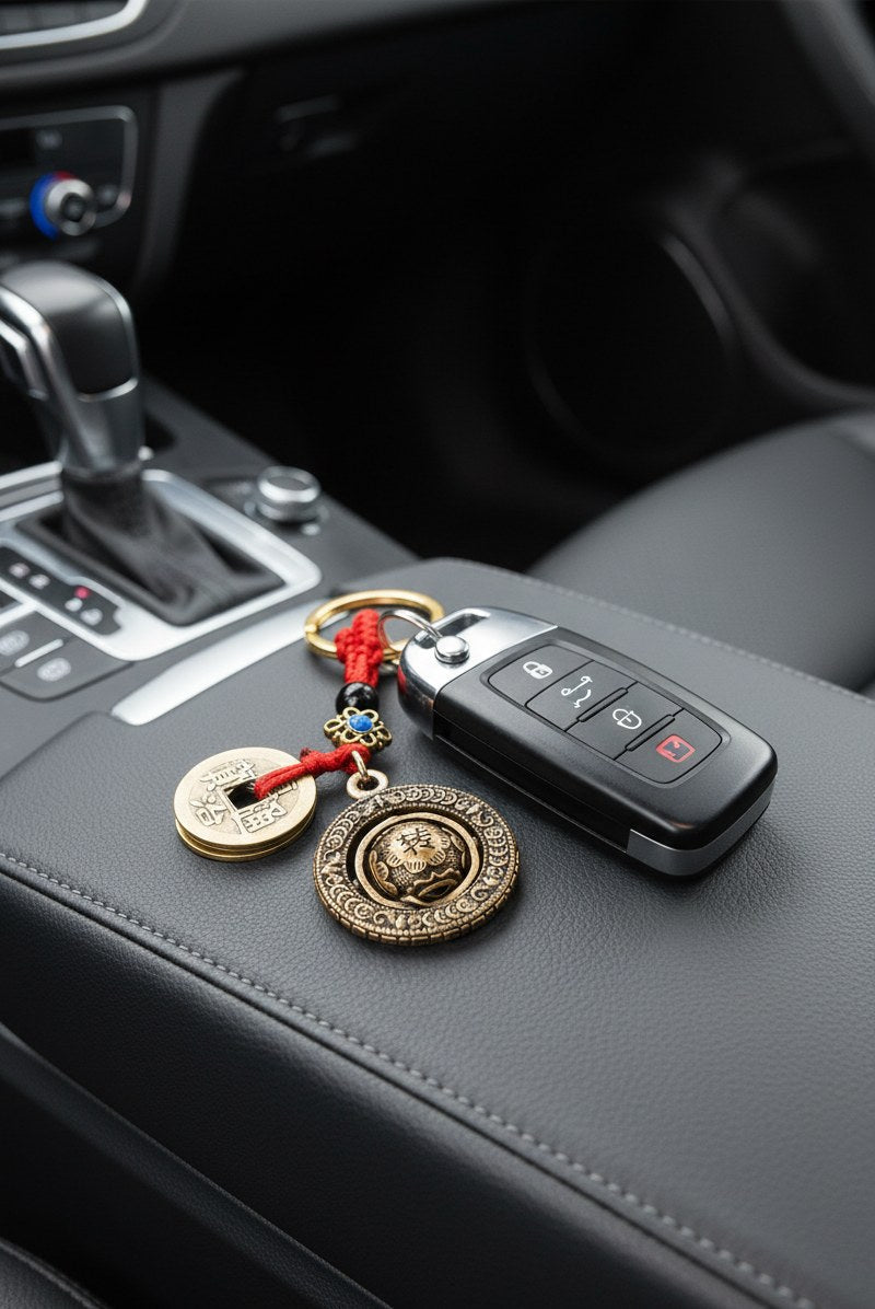 Moneda Chinezescă: Moneda prosperității este atașată pentru a asigura nu doar călătorii sigure, ci și profitabile. Este un simbol excelent pentru cei care călătoresc în interes de afaceri.