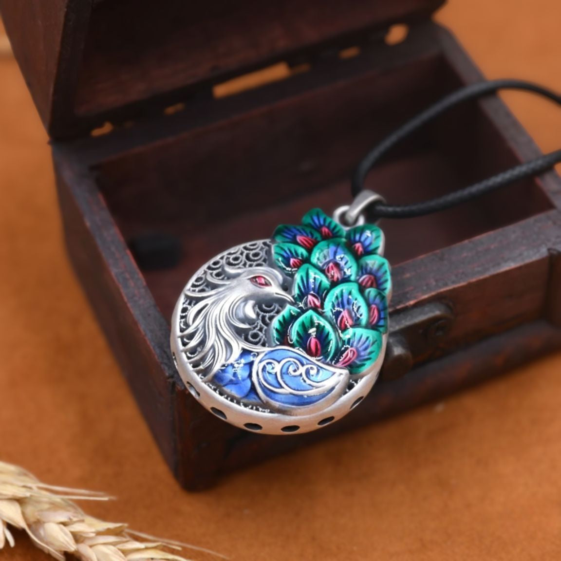 Fiecare detaliu este gândit să reflecte frumusețea naturală și simbolismul acestei păsări magnifice. Snurul ajustabil completează perfect pandantivul, asigurând o purtare confortabilă și elegantă.
