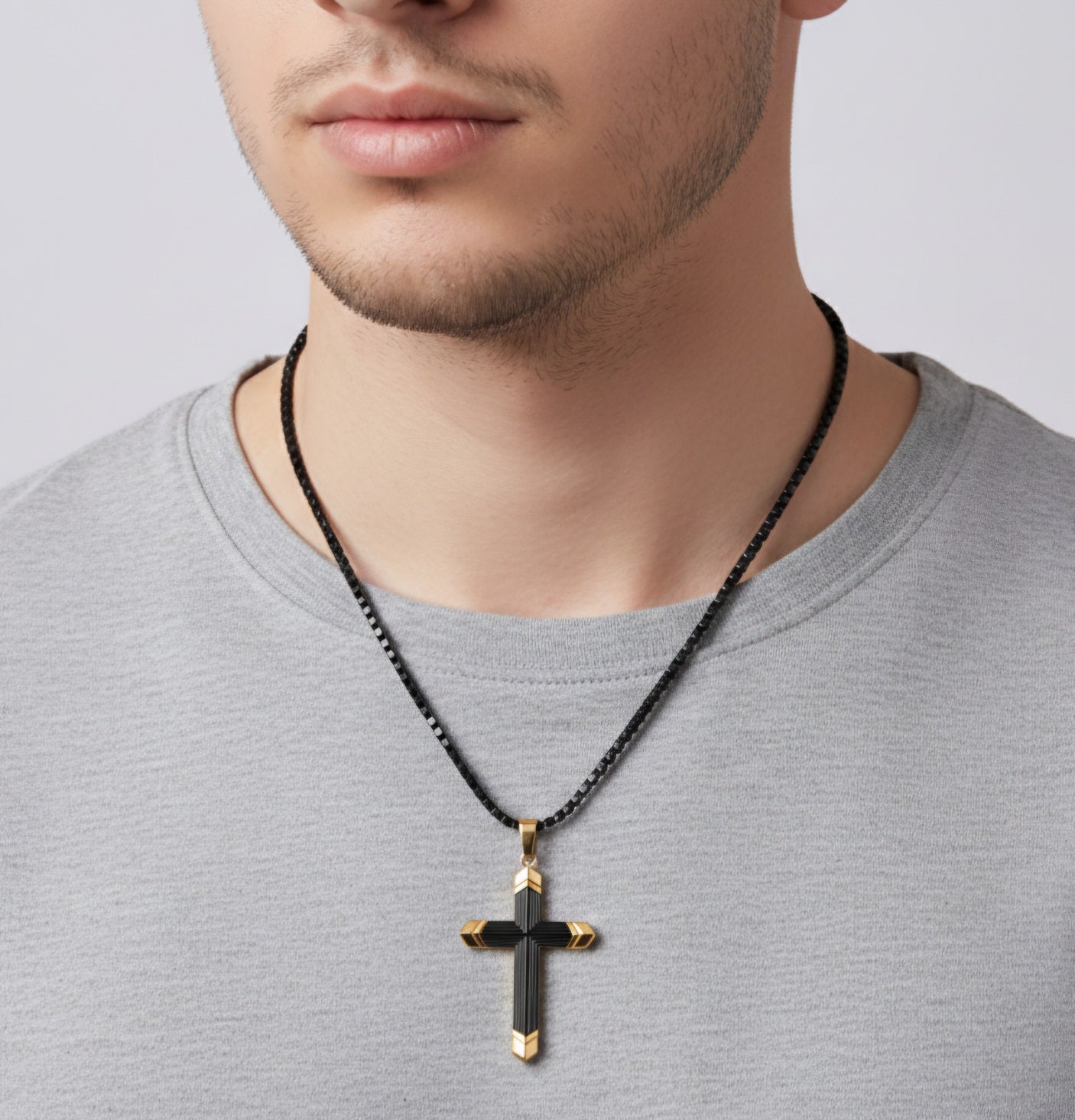 Ești în căutare de un accesoriu care să vorbească despre tine? Acest colier cu cruce este mai mult decât o simplă bijuterie. Crucea, un simbol atemporal al speranței, al credinței și al protecției, capătă aici o interpretare modernă. Creat special pentru bărbați, este fabricat din oțel inoxidabil de înaltă calitate, rezistent la rugină, decolorare și uzură zilnică. Poți să-l porți fără griji, de la sala de sport la o ieșire în oraș.