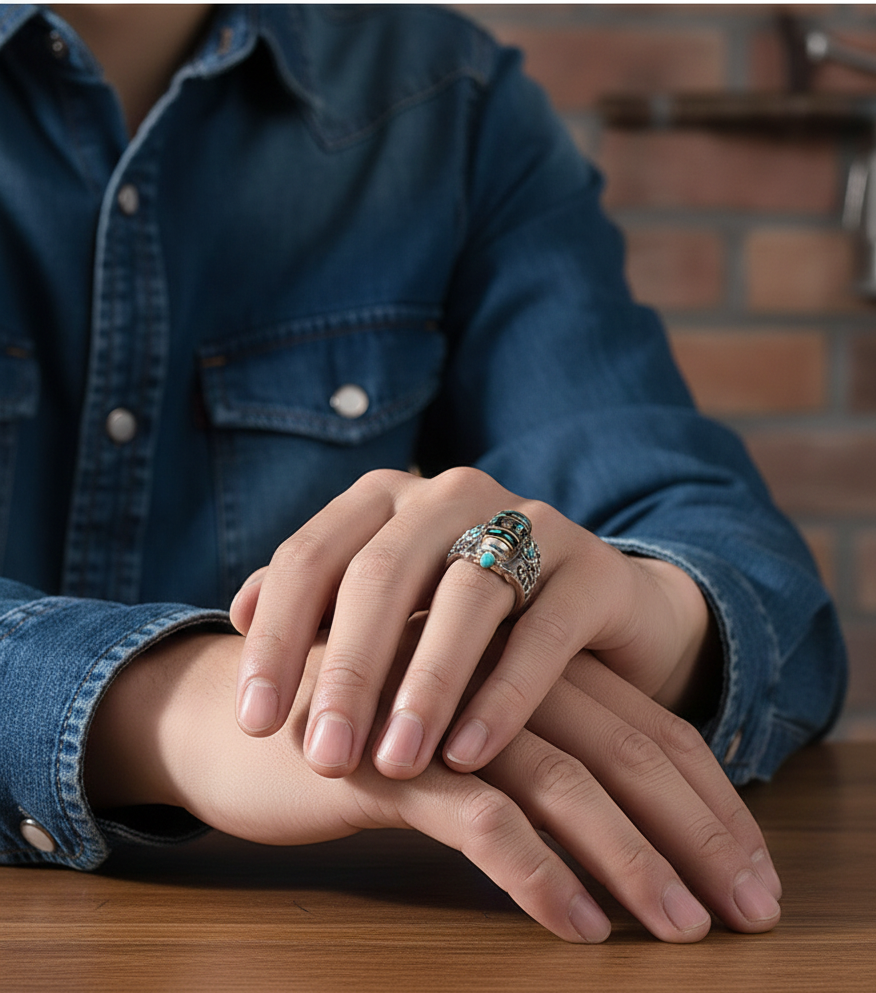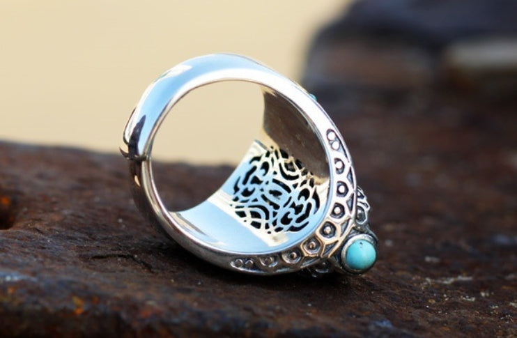 - Material Durabil: Realizat din argint tibetian (un aliaj metalic robust, adesea cu un finisaj antic), inelul este construit pentru a dura și a-și păstra farmecul autentic de-a lungul timpului.