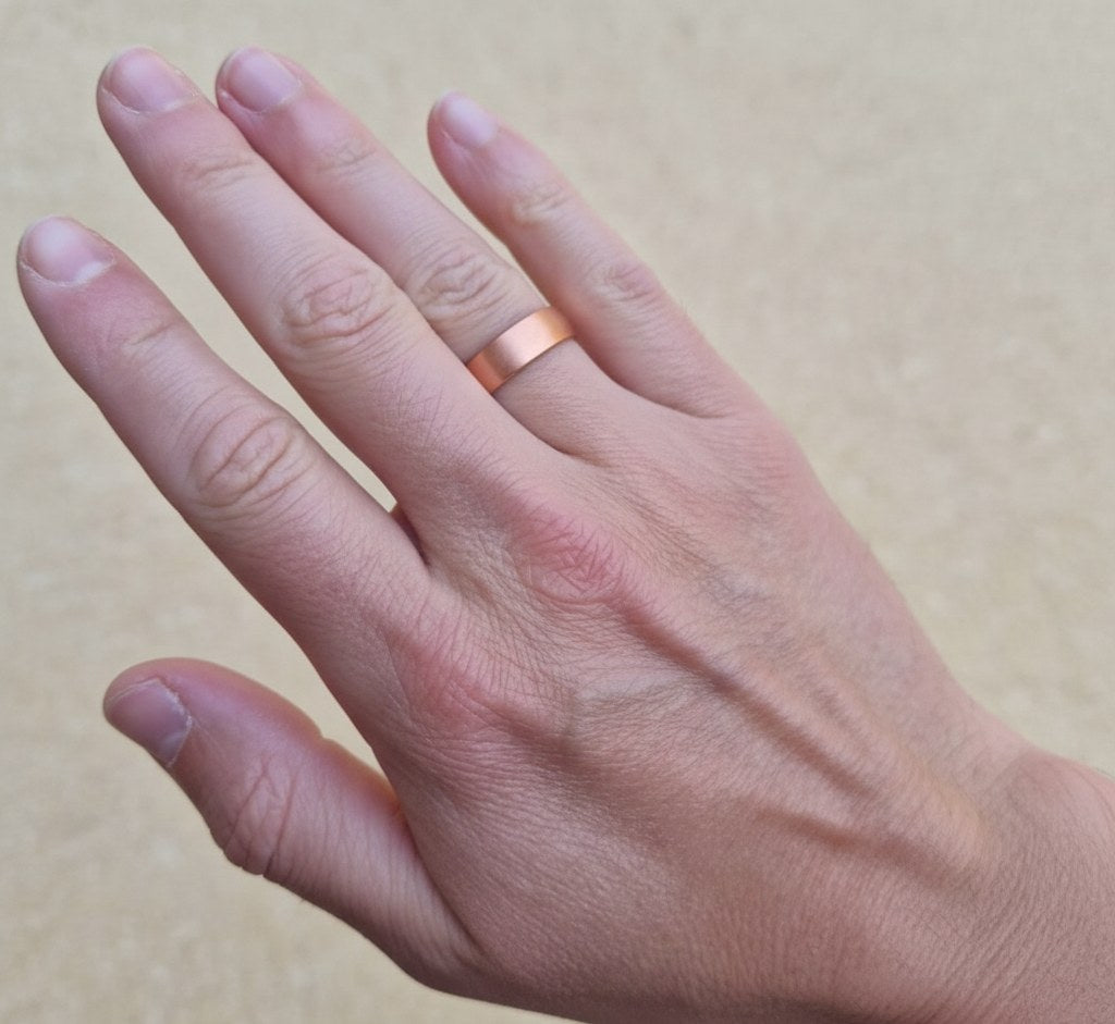 Acest inel elegant din cupru este prevăzut cu 4 magneți integrați și este conceput pentru a susține o stare de bine generală.