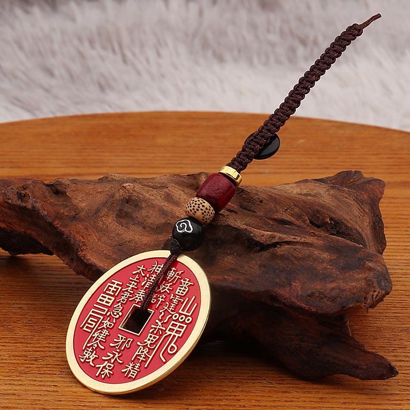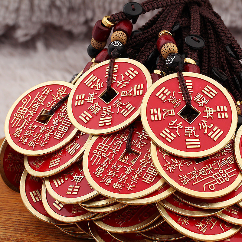 Moneda Norocoasă Shan Gui (山鬼花钱): Un talisman tradițional chinezesc, simbol al echilibrului și prosperității. Realizată din aliaj de cupru, această amuletă poartă simboluri mistice taoiste, inclusiv cele Opt Trigrame (Bagua), oferind protecție împotriva energiilor negative și atrăgând norocul.