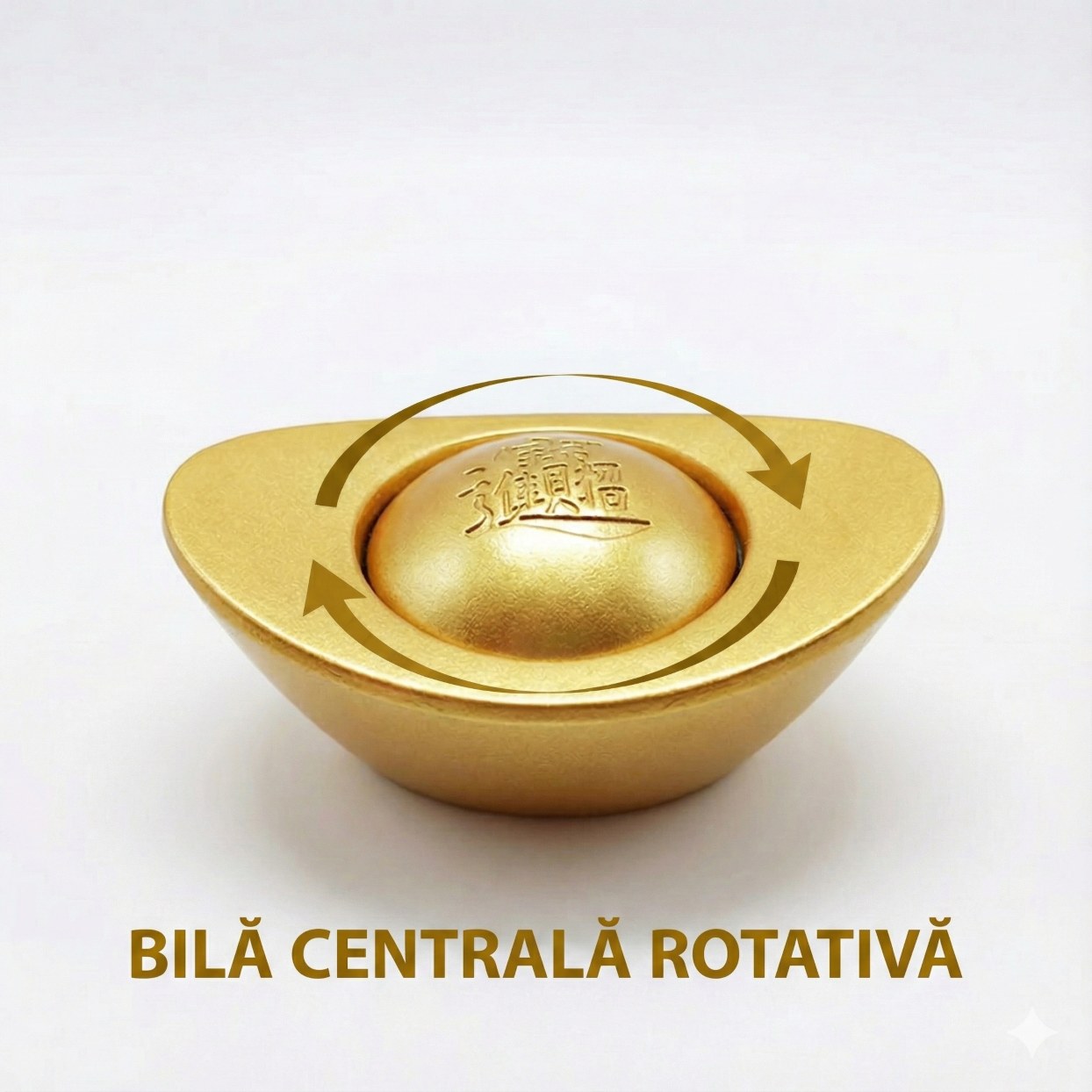 - Pe fața (partea rotativă) pepitei este gravat caracterul "招財" (zhāocái), care se traduce prin "Atrage Bogăția" sau "Invită Prosperitatea". Prezența acestui caracter pe elementul rotativ subliniază intenția de a "trage" constant averile spre dumneavoastră.