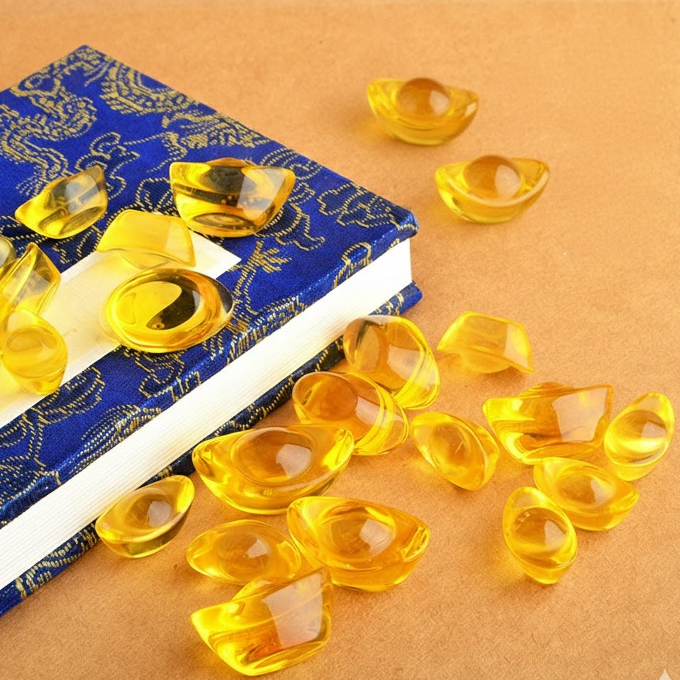 Pepite Aurii Mini (Yuanbao) – simboluri sacre ale bogăției și prosperității. Aceste mici comori aurii, inspirate din lingourile imperiale chineze, atrag și păstrează energia abundenței în casa sau biroul dumneavoastră.