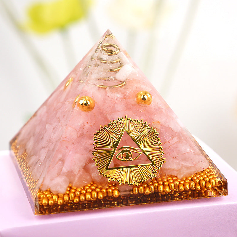 Piramida cu pietre de cuart roz , cu simbolul Ochiul lui Horus